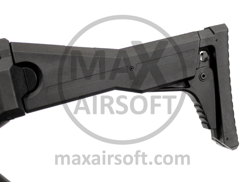 Scorpion EVO had a specially designed aluminum CNC frame gearbox with steel MIM gears and 8mm bearings. The gearbox is controlled by an electronic system and replica stops shooting when the magazine is empty! When reloaded bolt release needs to be pushed just like on the real weapon! It also detects mechanism malfunction or low battery level. The Gearbox has a Quick Spring Change System accessible at the rear of the body when after stock is folded. The replica is also equipped with ULTIMATE engine, a precision 6.03mm inner barrel and space for battery is inside the handguard. Battery and charger are not included.