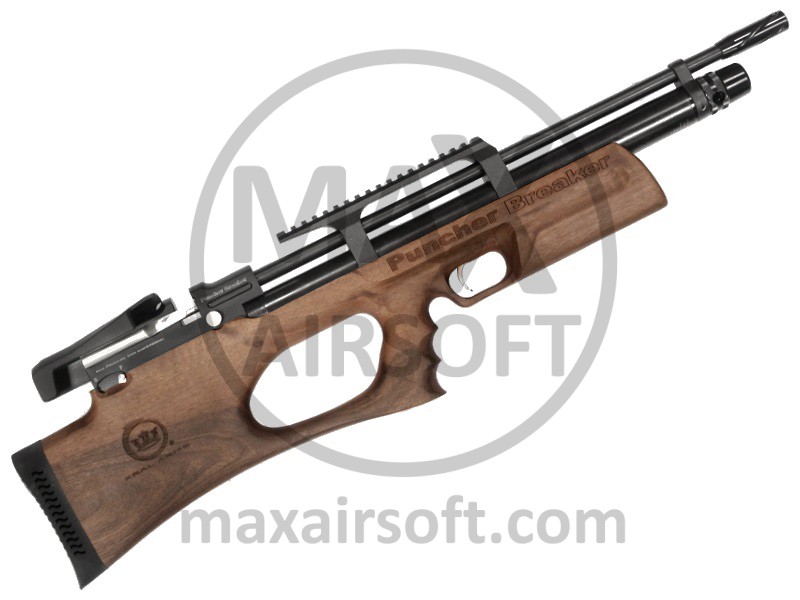 Puncher Breaker Zračna Puška proizvođača KRAL ARMS je izvrsna, precizna, lagana, bestrzajna PCP puška vrhunske kvalitete. Izrađena je od metala, s kundakom od turskog oraha, vrlo pouzdana i precizna sa dometom od preko 70m! Puška radi na PCP regulacijski sistem sa kompresiranim zrakom. Puška ima Sidelever ručku za jednostavno repetiranje potegom unatrag a na vrhu puške je 22mm šina za montažu optike.