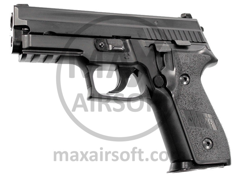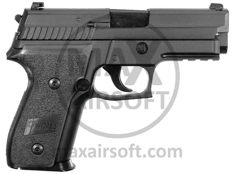 Trzajna plinska, popolnoma kovinska replika P229 proizvajalca KJW. Deluje na airsoft plin, ki se polni v nabojnik. Deluje polavtomatsko, dokler so v nabojniku BBji, zaklep pa pri delovanju skače v zadnji položaj. Ko se nabojnik izprazne ostane zaklep v zadnjem položaju, sprosti se z prožilcem zaklepa. Zaklep se odpne iz replike enako kot na pravem orožju in replika gre na 2 dela, da selažje čisti in maže. Hop up se nastavlja na hop up enoti pod zaklepom. Pištola ima pod cevjo montažo za pritrditev svetilke ali laserja.