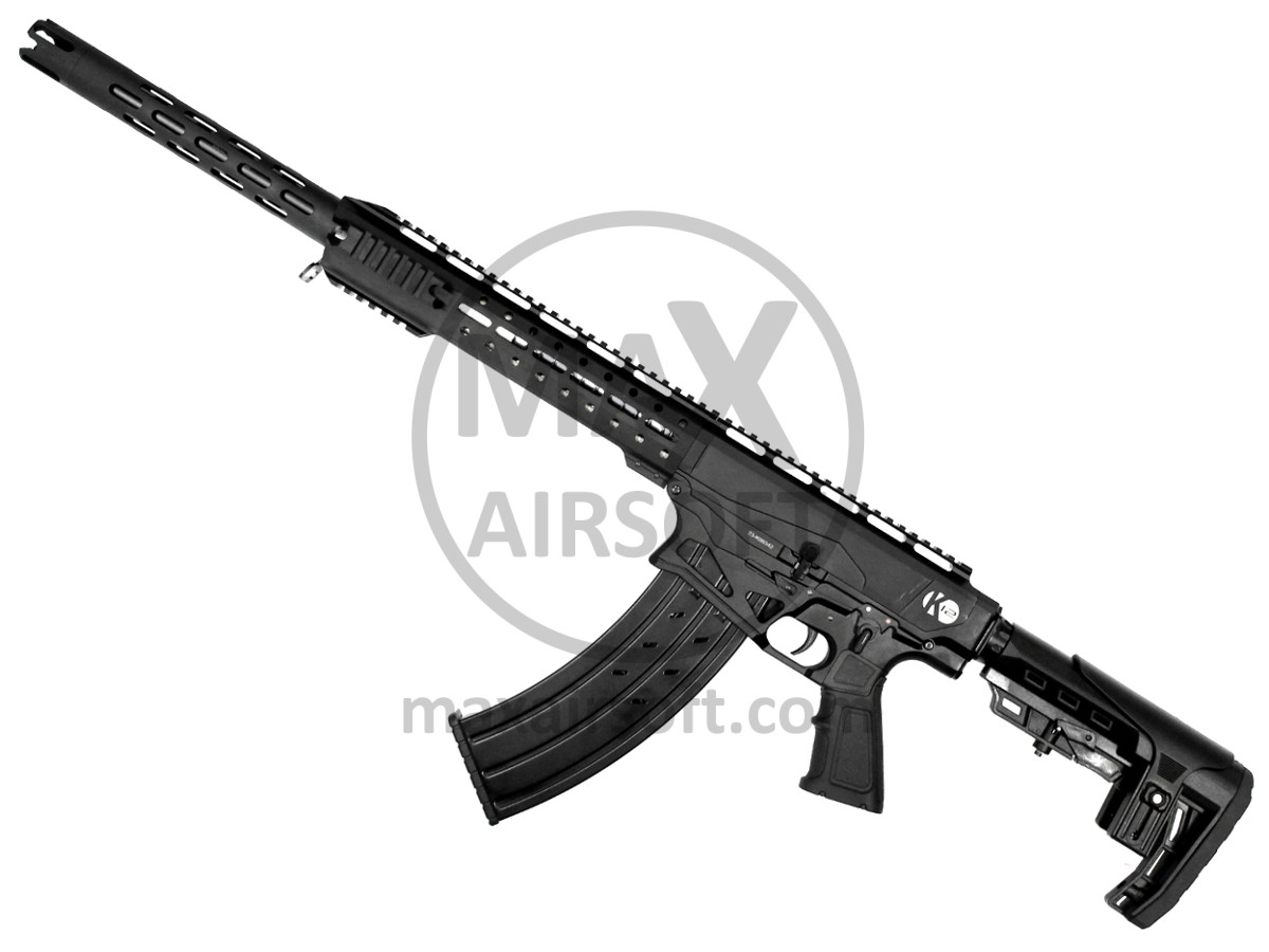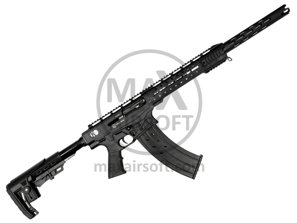 K12 12GA POLAVTOMATSKA Puška Šibrovka Turškega proizvajalca Kral Arms narejena na popularni AR15 obliki. Puška ima cev narejeno iz 4140 jekla, ohišje iz 7075 aluminija, snemljivo ročko in sprednji merek, teleskopsko kopito ter 2x nabojnik kapacitete 10+1 tulcev.