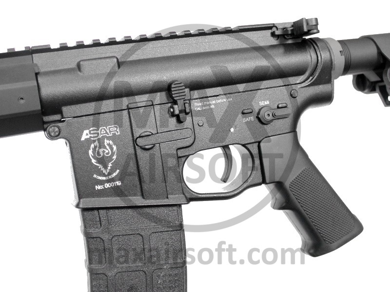 FULL-METAL replika M4 iz ASAR serije proizvođača Airsoft Systems je puška naminjena svima, koji traže potpuno nadograđenu pušku iz kutije! Puška ima novi tip deljenog Gearboksa sa standardnim V2 unutrašnjim dijelovima te sistemom brze zamene opruge, High Torque Motor, Preciznu 6.02mm Čeličnu poliranu Cev, integriran ASCU te puno drugih iznimnih noviteta. Replika je izrađena od metala sa odličnim premazom te se realistično deli na dva dela, ima free-float rukohvat, teleskopski kundak s prostorom za bateriju (Dean-T konektor) te realističan okidač. Baterija i punjač nisu u kompletu.