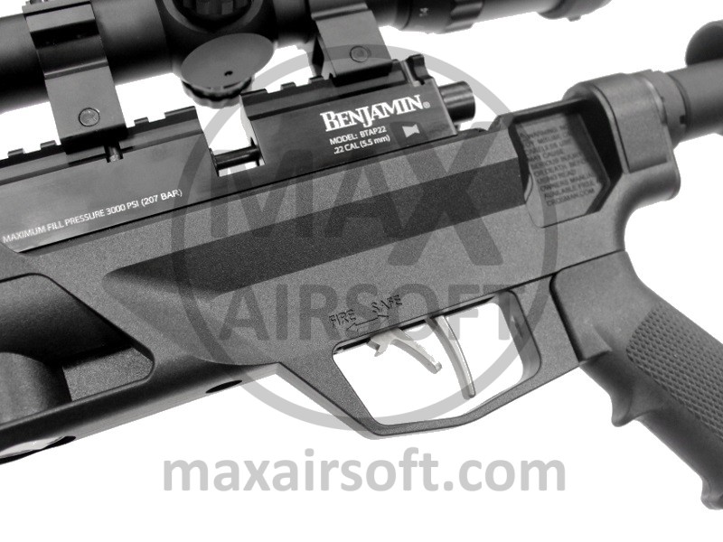 Benjamin Armada Vazdušna Puška proizvođača Crosman je izvrsna, precizna, lagana, bestrzajna PCP puška vrhunske kvalitete. Benjamin Armada je modernizirani Marauder s novim izgledom, Magpul MOE pištoljskom ručkom i M-LOK rukohvatom. Izrađena je od metala sa podesivim kundakom, vrlo pouzdana i precizna sa dometom od preko 90m! Puška radi na PCP regulacijski sistem sa kompresiranim vazduhom koji omogučava kontroliranu regulaciju tlaka/snage. Jedno punjenje dovoljno je za više od 30 pucnja. Puška ima dvostupanjski podesiv "Match" okidač za precizno i mekano pucanje svaki put te ima mali bubanj kapaciteta 10 diabola. U kompletu su sklopljiv podesiv bipod i 4-16x56 optika.