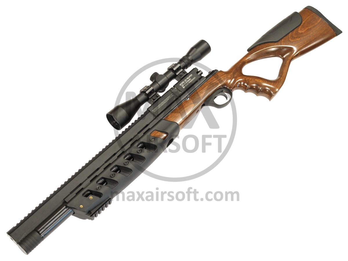 Reaper Zračna Puška proizvođača Swiss Arms je izvrsna, precizna, lagana, bestrzajna PCP puška odlične kvalitete. Izrađena je od metala, s kundakom od pravog drva, vrlo pouzdana i precizna. Puška radi na PCP regulacijski sistem sa kompresiranim zrakom. Puška se repetira sa ručkom a na vrhu je 22mm šina za montiranje uključene 4x40 optike.